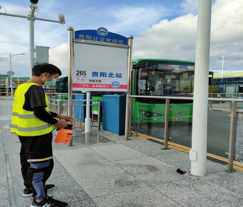 陈进鹏同学在贵阳市参加公交站志愿者服务活动