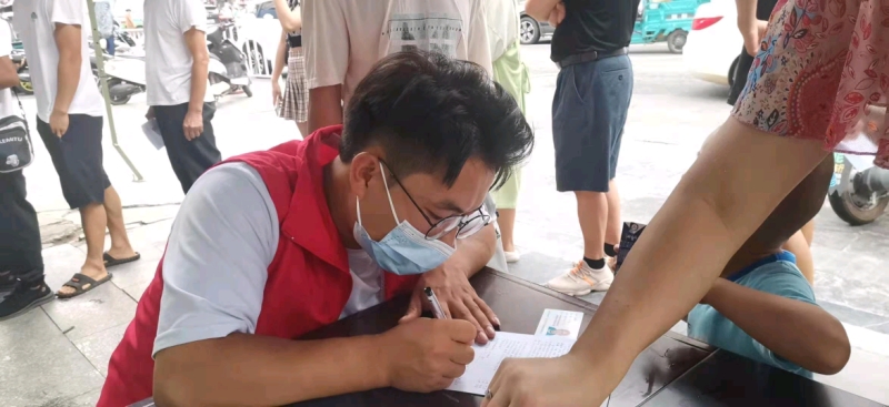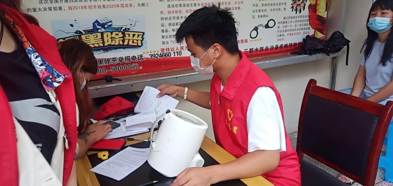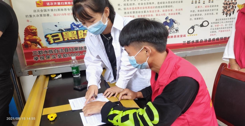 雷高豪同学在三都县预防接种门诊做志愿者