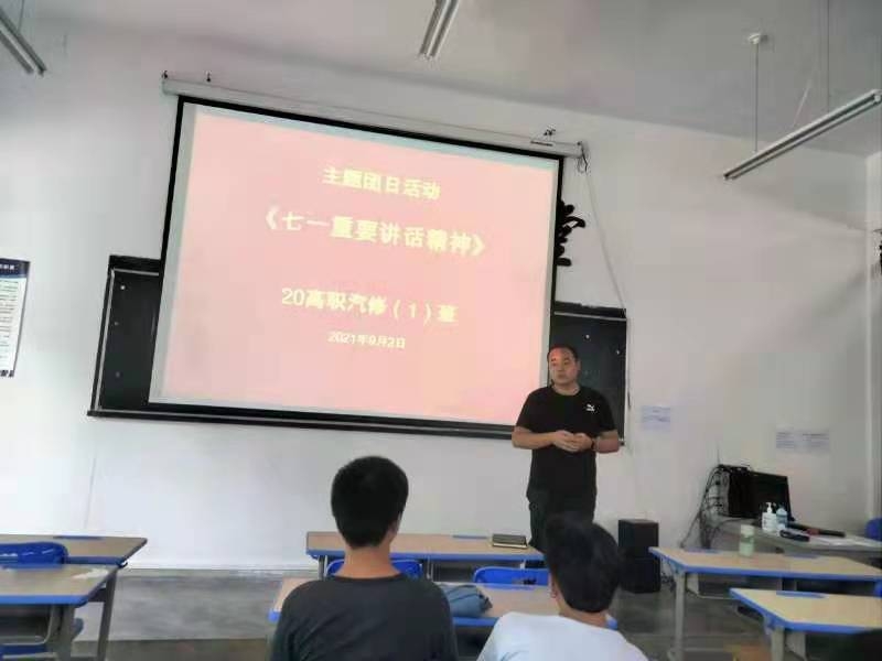 活动中,由辅导员根据系党总支、团总支制作的讲义进行领学,通过学习“习近平总书记在庆祝中国共产党成立100周年大会上的讲话”精神,树立正确的党史观:广大青年要肩负历史使命,坚定前进信心,立大志、明大德、成大才、担大任、努力成为担当民族复兴重任的时代新人,让青春在为祖国、为民族、为人民、为人类的不懈奋斗中绽放绚丽之花,增强学生的集体荣誉感,责任感,使命感。汽车工程系党总支书记张军杰对活动筹备进行工作指导表示,习近平总书记的重要讲话高屋建瓴,鼓舞人心,解码了中国共产党由小到大,将理想照进现实,引领中华民族走向伟大复兴的光辉历程,同时庄严宣告向第二个百年奋斗目标迈进。重要讲话激励着汽车系师生继续扎根在黔南办教育、做研究,引导青年学子进一步增强志气、骨气和底气,积极学习宣传践行习近平新时代中国特色社会主义思想,让青春闪耀在祖国和人民最需要的地方,助力实现乡村振兴战略。