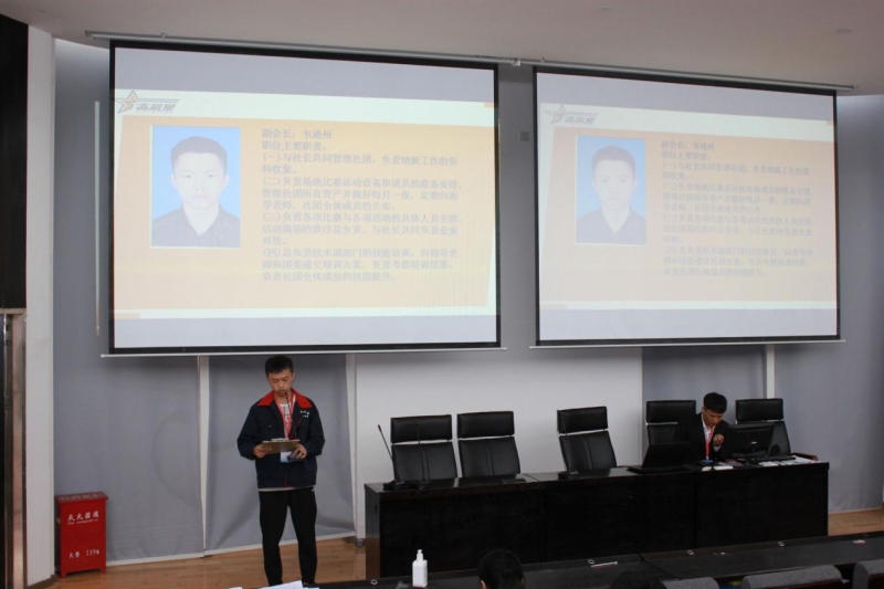 汽车工程系专业教师岑遗星向同学们介绍协会成立的目的及主要训练内容