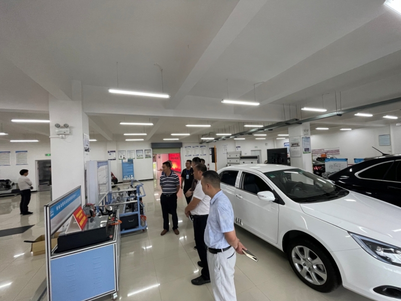 杨永森校长一行来到匠心楼C栋,实地察看了汽车工程系新能源汽车技术实训室,新能源汽车专业教研室主任何迎老师作了详细的介绍。随后,双方到汽车工程系会议室进行交流座谈。交流中,张军杰、万东操详细介绍了我院新能源汽车技术专业的办学情况、专业课程的设置、学生实习就业的岗位以及专业未来的发展方向等。双方就下一步在黔南州职业教育联盟框架下怎样开展好高、中职专业上的衔接工作作了深入探讨。