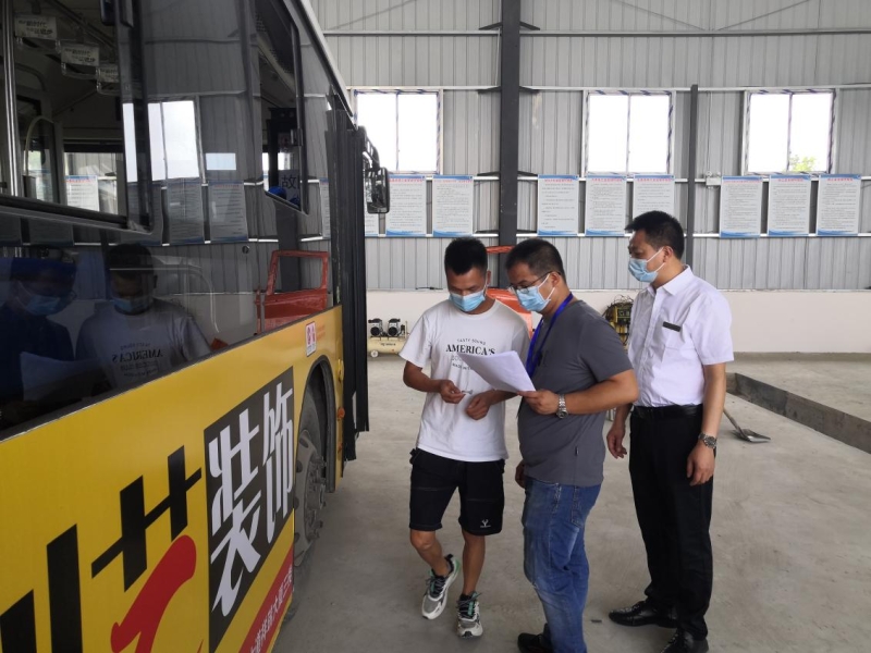 图6黔南州汽车维修协会刘林会长与三都职校白玉乐老师对学员学习进行考评