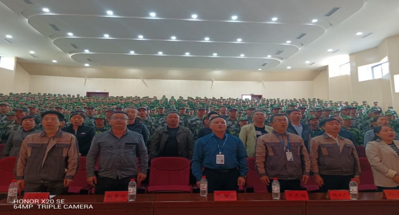 汽车工程系2022级新生入学教育大会在庄严的国歌声中拉开序幕,全体师生起立高唱国歌。