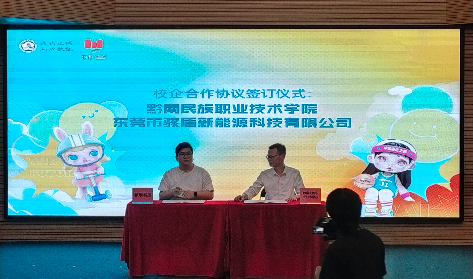 仪式上,多家企业与高校达成深度合作意向,现场签订校企合作协议:广东东莞骇盾新能源科技有限公司与汽车工程系签订了校企共建实习就业基地协议。汽车工程系现有机电一体化类、新能源汽车技术(含储能)类毕业生与石排镇的产业特色高度契合。