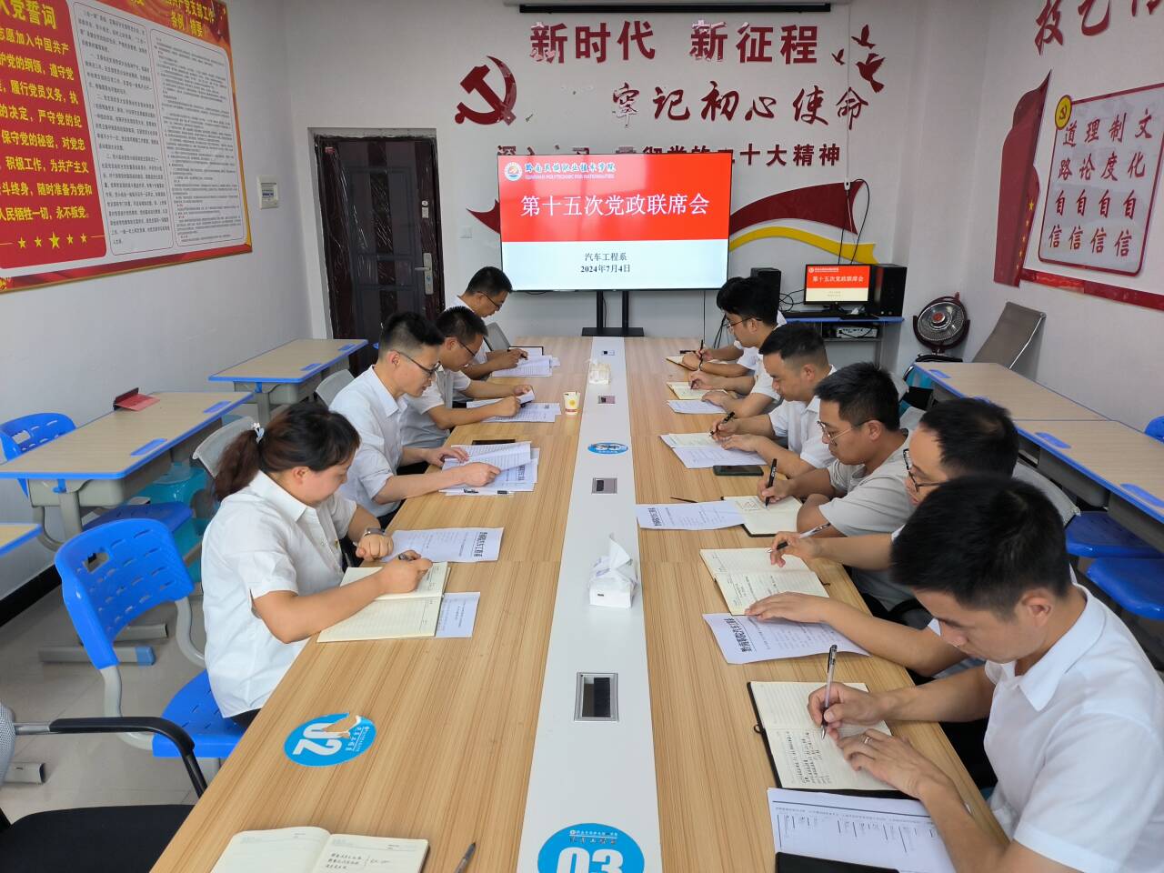 2024年7月4日下午,汽车工程系召开党政联席会议,党委委员、副院长段班权出席会议并作指导讲话,会议由汽车工程系党总支书记张军杰主持。