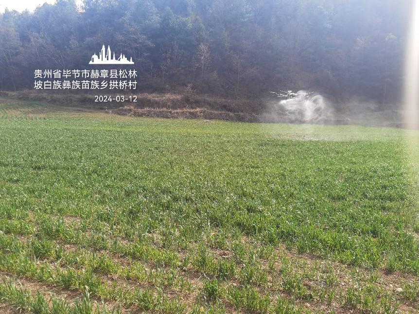 图2 在毕节市赫章县松林坡白族彝族苗族乡开展水稻无人机植保服务