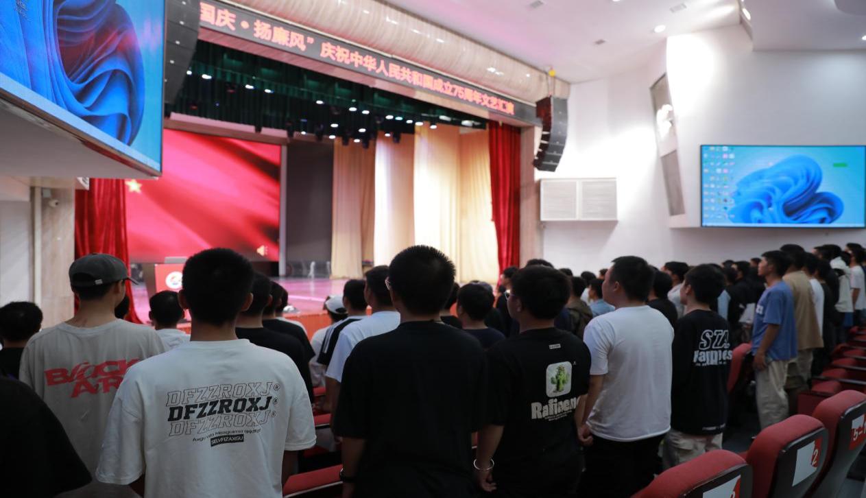大会在庄严的国歌声中拉开序幕,全体师生起立高唱国歌。