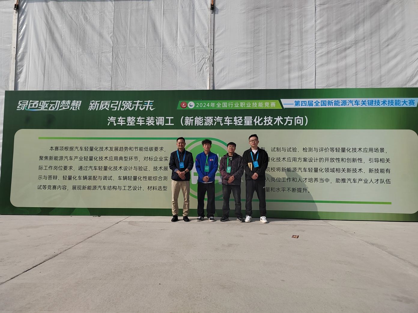 2024年11月21日,由中国机械工业联合会、人力资源社会保障部、中华全国总工会主办的“2024年全国行业职业技能竞赛——第四届全国新能源汽车关键技术技能大赛”闭幕。我系专业教师何迎、罗健飞指导的新能源汽车技术专业学生选手邱成平、贺贵勇参加了新能源汽车轻量化技术方向赛项,取得该赛项二等奖(全国第八名)的好成绩,这是学院首次派出参赛队参加该大赛,也是我系新能源汽车技术专业岗课赛融通教学改革探索取得的检验成果之一。