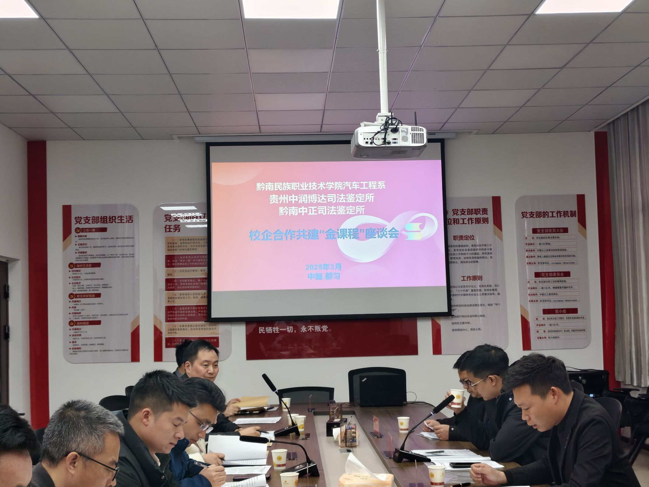 2025年3月28日,贵州中润博达司法鉴定所、黔南中正司法鉴定所一行与汽车工程系领导和专业教师就专业建设合作开展座谈。座谈会由何迎主持,汽车工程系汽车类专业教师参会。汽车工程系主任万东操就企业为专业教师提供锻炼平台表示感谢,双方深入交换了意见建议。