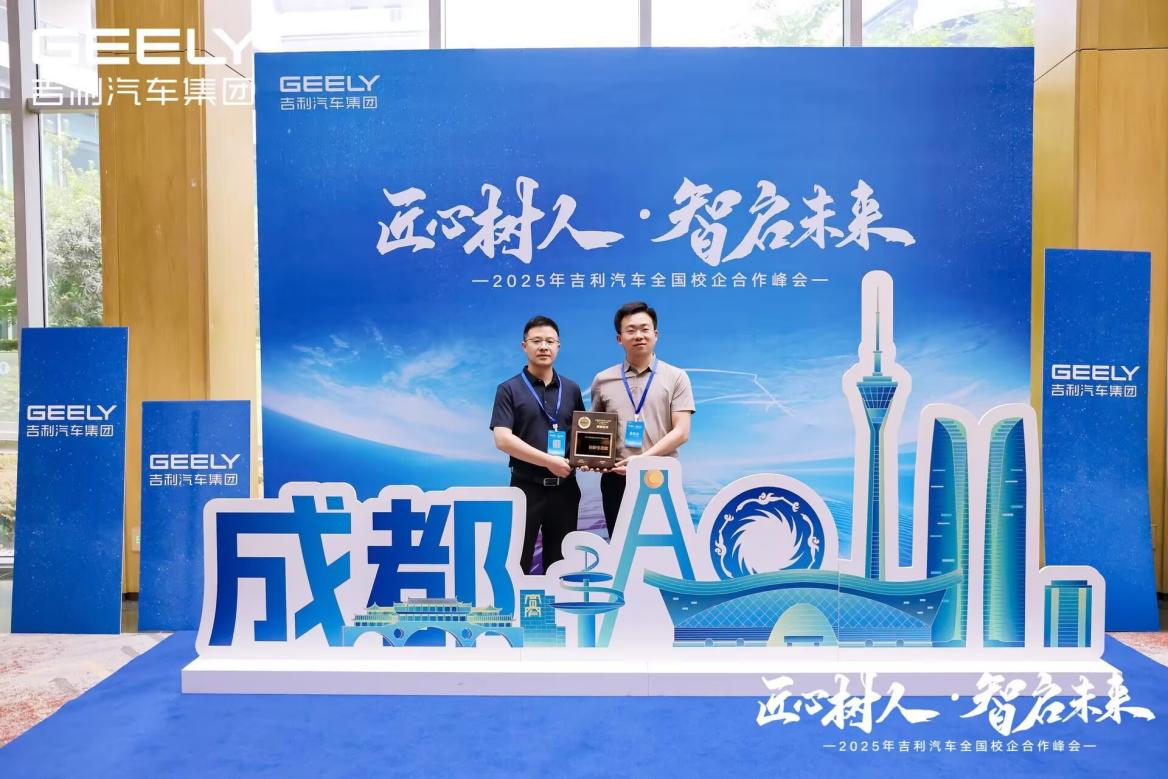 2025年5月16日,吉利汽车全国校企合作峰会在成都举行,汽车工程系党总支书记杨均代表学校受邀出席并领奖。我校凭借产教融合领域的创新成果与实践成效,荣获吉利汽车颁发的“产教融合创新生态奖”。该奖项充分肯定了我校在校企协同育人、合作开发教材及项目共建等方面的突出贡献。杨均书记表示,汽车工程系将持续深化与吉利集团的产学研合作,推动教育链与产业链深度融合,为行业高质量发展作出新贡献。