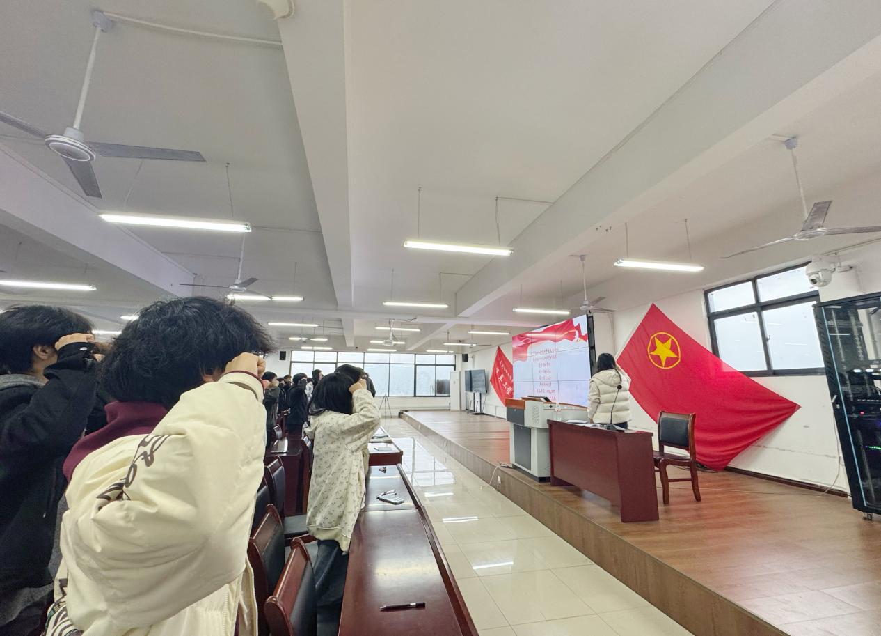 本次会议紧扣团纪教育核心有序开展,团总支书记韩晓春带领团员学习团章及团的纪律规定,通报支部纪律建设情况,汇报上一年组织生活会问题整改落实成效。会上,各班团支部书记及干部依次开展批评与自我批评,汇报个人团纪学习遵守情况、剖析自身不足,团员逐一评议并提出改进建议;随后围绕政治素质、道德品行等维度,以个人自评、团员互评、组织评定相结合的方式开展民主评议,客观评价团员表现。团总支书记总结并明确整改方向与工作要求,全体团员面向团旗重温入团誓词,强化责任担当。