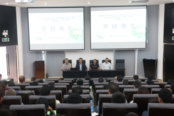 根据贵州省传统手工技艺助推脱贫培训计划(2016-2020年),结合文化部办公厅、教育部办公厅《关于实施中国非物质文化遗产传承人群研修研习培训计划的通知》(办非遗函〔2015〕581号)和贵州省非物质文化遗产保护传承教育培训基地遴选工作实施方案的要求,在贵州省文化厅的领导、关心、支持下,在黔南州文化广电新闻出版局指导下,中国非物质文化遗产传承人群研修研习培训计划“都匀毛尖茶制作技艺培训班”(第五期),今天在我院知行楼新落成的学术报告厅开班。上午9点正式举行了开班典礼,出席开班典礼的领导有:黔南州文化广电新闻出版局非遗科黄家富科长、黔南州非物质文化遗产保护中心卢延庆主任、黔南民族职业技术学院现代山地农业工程系主任张金华,副主任夏传金。黔南民族职业技术学院贵州省教育厅省级都匀毛尖茶大师工作室部分专家。