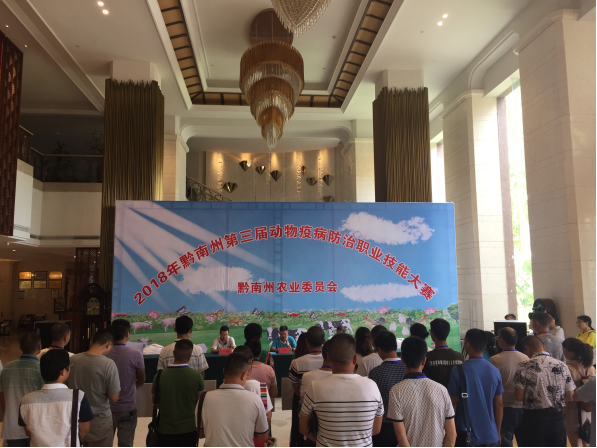 2018年7月19日至20日,由黔南州农业委员会主办的黔南州第三届动物疫病防治技能大赛在都匀市甘塘镇茶都格尼斯温泉大酒店成功举行。全州12县市组成的12个代表队参加了本次职业技能大赛,每个表队由县市农业局分管领导带队,县市动物疫控中心主任、参赛队员组成,参赛队员共36名。