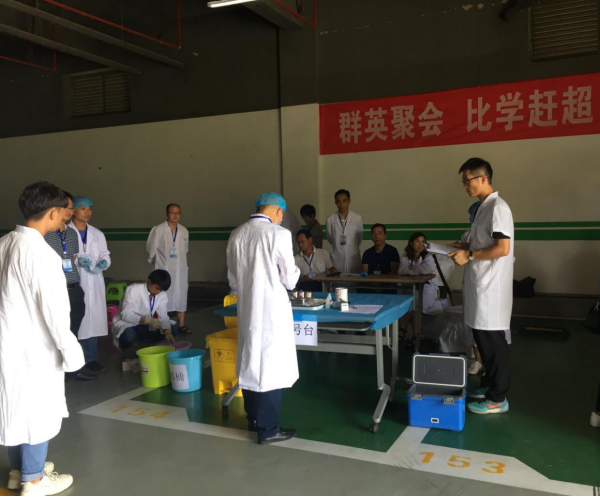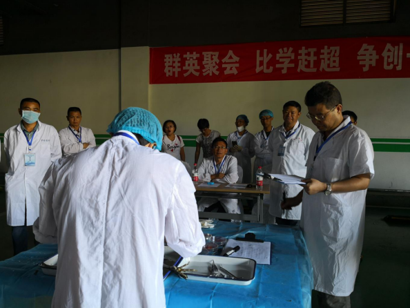 本次职业技能大赛分为理论知识考试和现场技能考核2个部分。技能考核的内容有猪瘟疫苗免疫注射、猪前腔静脉采血、鸡翅静脉采血、鸡心脏采血、鸡体解剖与采样共5个项目。
