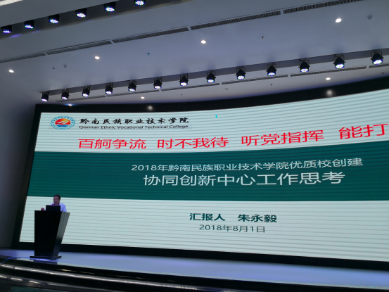 协同创新中心具有涉及人员广、科研基础好、产教融合深、科技产出高、人才培养强的特点,朱永毅书记从建设背景到建设过程中遇到的种种困难,以及如何破解难题,向大家做了深入讲解。最后讲述他对协同创新中心建设的思考:用他山之石、可以攻玉,直面问题、重点突破。也为构建黔南民族职业技术学院共同的精神家园,提倡教师要甘于奉献,学院顶层须构建好机制,创造好氛围,为创建优质高职院校共同努力奋斗。