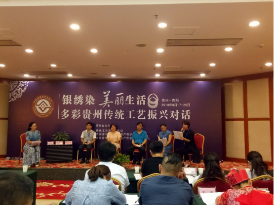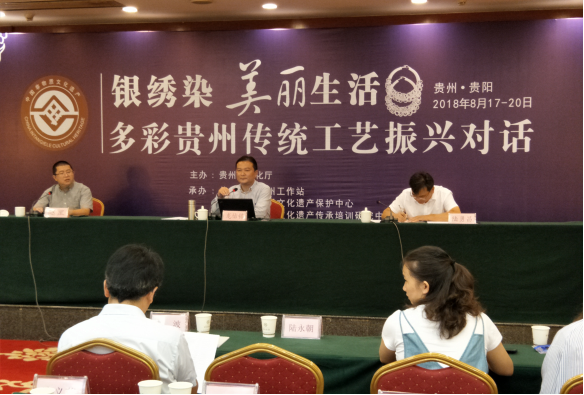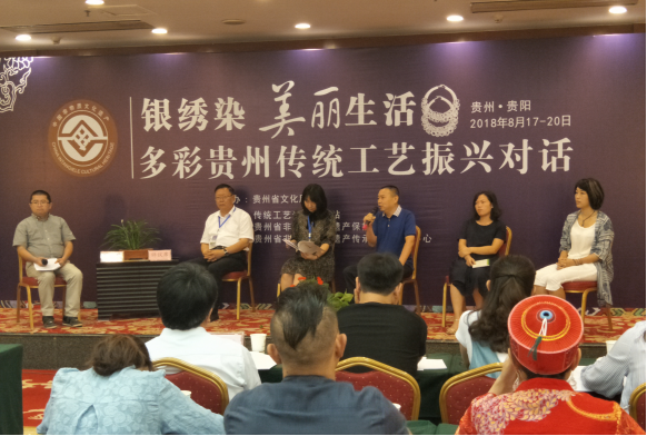 2018年8月18日,我系夏传金老师参加在贵阳召开的多彩贵州传统工艺振兴对话,本次活动由贵州省文化厅主办。贵州省文化厅、贵州省非遗保护中心等领导,及各大院校、非遗传承人、企业及媒体代表等参加了这次会议。苏州工艺美术学院赵罡院长,非物质文化遗产保护中心龙佑铭主任,非物质文化遗产保护中心陆勇昌副主任等出席并讲话。