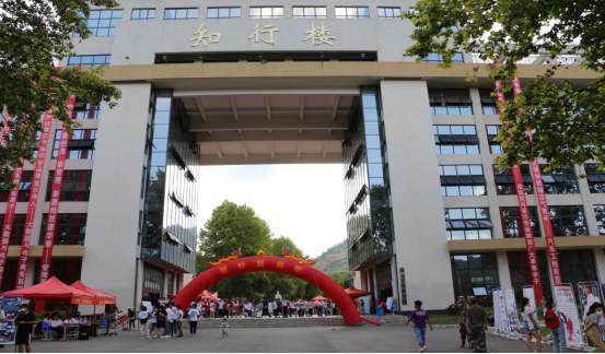 知行楼前矗立的彩虹门,高高挂起的红色条幅,各个社团精美的展板,让迎新现场变得热闹非凡。