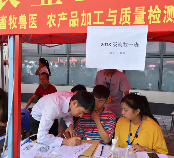 系领导深入到迎新现场指导工作,新生班主任在现场为同学及家长答疑解惑。