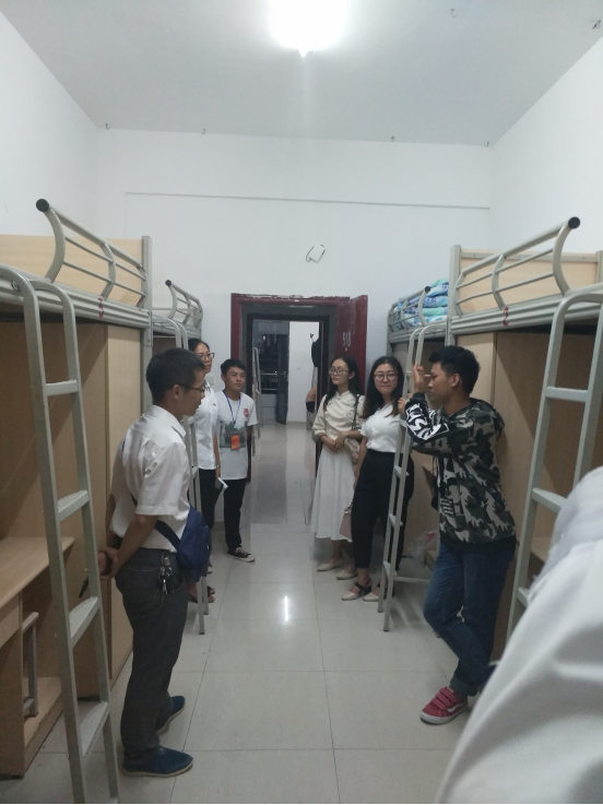 晚上8时,宋志雪副主任带领各班班主任和学生干部到寝室看望新同学,处处体现人文关怀。