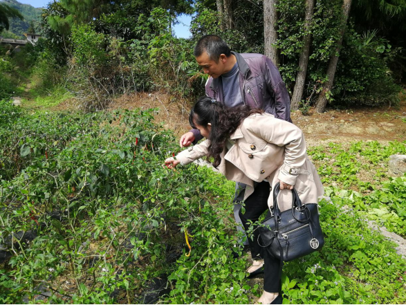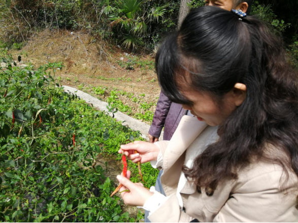 2018年9月29日,在我系科技特派员宋志雪的积极联系下,夏传金副主任、罗来银一行来到林荫村调研辣椒收成情况。