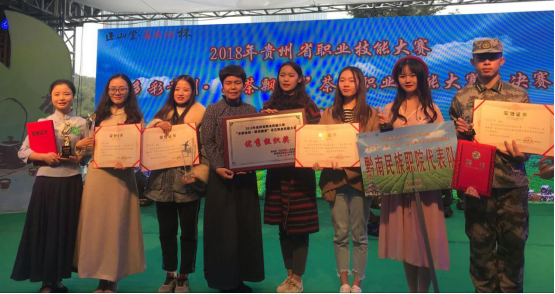 2017高茶2班孟远佳作为我院团体赛参赛作品《我的心上毛尖》的主泡茶艺师,代表学院获得茶艺团体赛银奖。本次大赛前三名由人社厅授予“贵州省技术能手”称号,我院陈悦沁、谢婷、张庆庚(管理系)为高级茶艺师持有者获得前五名,可以直接晋升为技师;冯霞为茶艺技师持有者获得前三名,可直接晋升为高级茶艺技师。