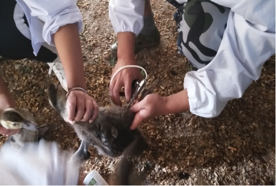 最后给雏鸭注射疫苗,同学们熟练的动作、默契配合、团结互助,圆满完成任务。此次活动不仅提升了社团成员的实践动手能力,也提高了社团在社会的影响力。