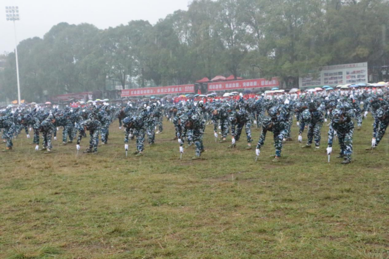 民兵分队展示匕首操,向全院师生展现军队风采,军队的魅力。
