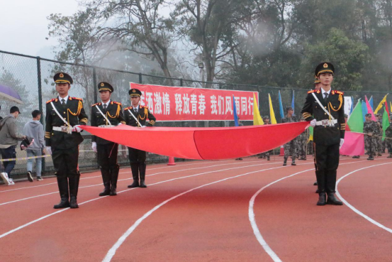 英姿飒爽的国旗队拉开十五届大学生运动会的序幕。