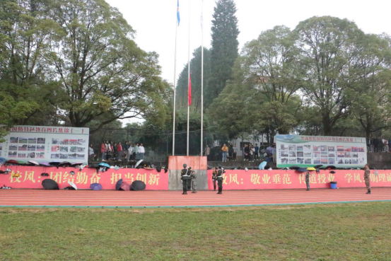 鲜艳的五星红旗伴随着全院师生的歌声缓缓升起,也预示着黔南职院也会像五星红旗一样迎风飞扬。