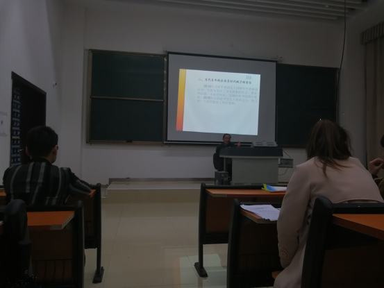 2018年11月15日系教务主任杨均老师在1-1教室讲解“党的性质和指导思想”。
