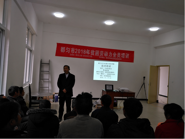 2018年11月17日,农工系潘明兴老师到都匀市匀东镇坝固羊列村对扶贫户作养殖技术(养蜂、养猪、养牛)培训,共培训34余人。