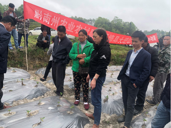 下午,由黔南职院庭玉凤老师给大家讲解金丝皇菊的种植技术,培训会采用理论与实操相结合,庭玉凤老师对金丝皇菊育苗、移栽、田间管理、病虫害防治、采花及加工进行了全面细致的讲解。随后,到水沟村金丝皇菊种植基地进行田间操作示范,庭老师详细介绍了金丝皇菊扦插、移栽及水肥、病虫害防治注意事项,并对基地存在问题提出解决办法及意见。同时,由于大塘镇8-11月分空气湿度大,而这个季节正是金丝皇菊采花高峰期,导致所采的菊花含水量高,对品质影响较大,针对这一问题庭老师建议农户可以用炭火烘烤的方法,避免金丝皇菊发霉变质。