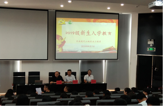 2019年9月7日上午9点,黔南民族职业技术学院现代山地农业工程系在知行楼圆形报告厅开展了2019级新生入学教育。参加此次讲座的有农工系党总支朱永毅书记、系范大有主任、各教研室主任、各位19级班主任及19级全体新同学,本次讲座由宋志雪老师主持。