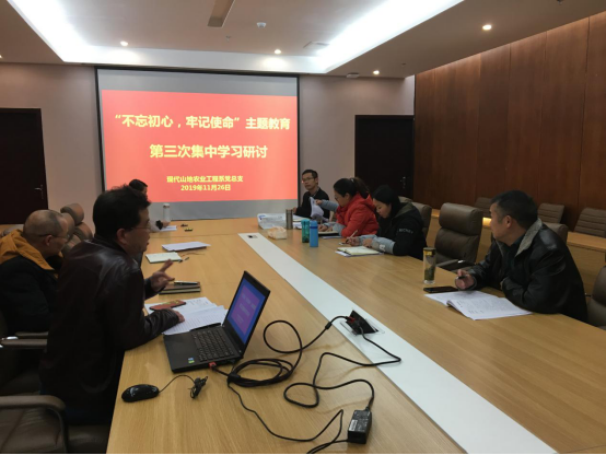 2019年11月26日下午4:20,黔南职院现代山地农业工程系党总支在学院知行楼系会议室召开“不忘初心、牢记使命”主题教育集中学习研讨会,系总支委员、各支部委员、教研室主任共计11人参会,学院主题教育活动指导第二小组副组长孟匀和党员李杰同志到会指导,系“不忘初心、牢记使命”主题教育工作小组组长系党总支书记朱永毅同志主持会议。