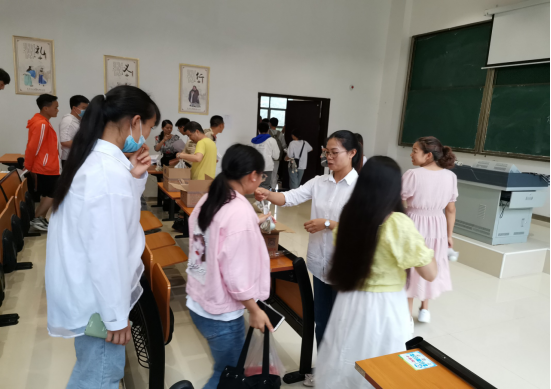 紧接着朱书记给系上同学分发粽子和鸭蛋,并嘱咐同学们端午放假期间注意安全,记得给家里人问好。