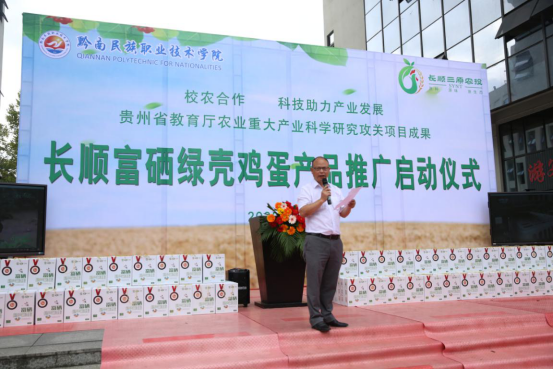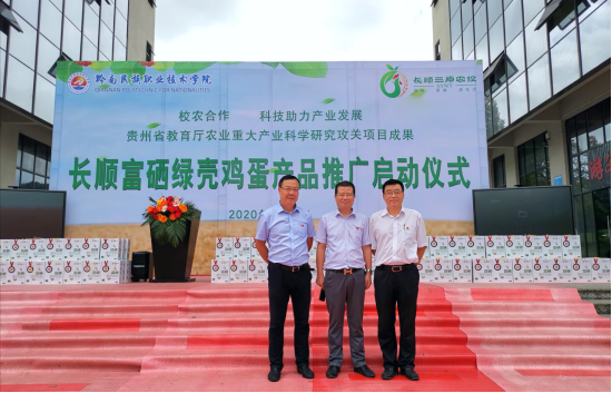 2020年9月8日,贵州省教育厅农业重大产业科学研究攻关项目成果——“长顺富硒绿壳鸡蛋”产品推广启动仪式在我院取得圆满成功。