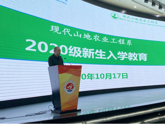 10月17日晚,现代山地农业工程系在知行楼学术报告厅举行2020级新生入学教育活动。参加本次活动的有学院张金华副院长、农工系系党总支朱永毅书记、系范大有主任、系学管负责人宋志雪、2020级各班班主任老师及部分教师。