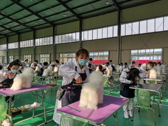 2021年3月31日,“1+X”宠物护理与美容实操考核在学院养殖实训基地举行。为期一天的考核,分为干区宠物模型造型修剪和湿区真犬保定、清理耳道、眼睛洗护、洗浴、吹干散毛等项目进行。经过评审员逐一对考试作品和操作过程进行点评打分,评选出最佳技术奖、最佳造型奖、最佳创意奖和最佳设计奖各1名。整个实操过程紧张而有序,考生动作规范,展现出标准统一的职业形象,在容易被忽略的准备和收尾工作这些小细节中更是表现得细致入微,体现出日常职业素养培养成效,更得到了评价组织高度肯定。