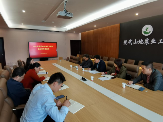 十四五开局之年,为贯彻落实国家省及学院党委关于“六保六稳”及重视就业的相关精神,2021年4月21日下午,钟少兰副院长及招生就业处高尚处长等一行5人到现代山地农业工程系开展就业工作推进会。参会的有招生就业处胡江处长、蒙明洲老师、朱仲文老师、我系党总支朱永毅书记、范大有主任、宋志雪老师、就业工作人员周迪老师及毕业生班主任代表潘成文老师。
