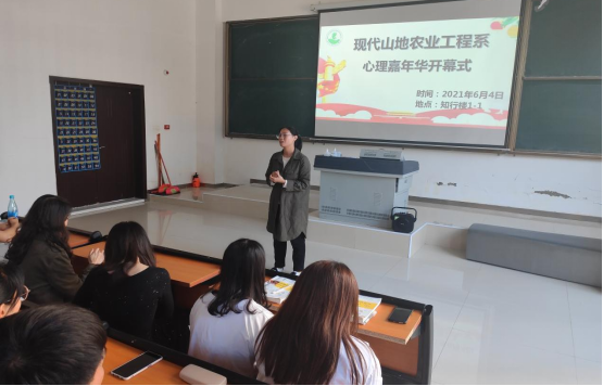 为进一步落实全国高校思想政治工作会议要求,不断加强和改进高校心理素质教育工作,提高大学生心理健康素质,培养学生良好的心理品质,增强学生适应能力。2021年6月4日,现代山地农业工程系第一届心理嘉年华“我心飞翔”活动开幕式在1-1教室顺利开幕。出席此次开幕式的有系学管主任宋志雪老师、团总支书记王璐璐老师、辅导站李潇蒙老师、周迪老、学生会干部、各班班长及心理委员。