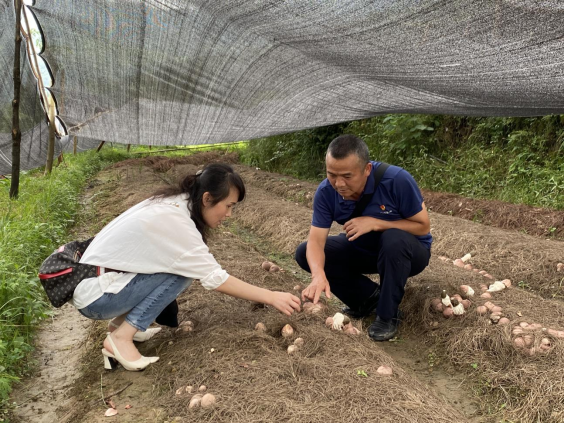 在凌湾村,在村支书的带领下,农工系总支一行实地调研了红托竹荪和博落回的种植基地,针对发现的问题,夏传金、罗来银等专家给出相应的解决方案。