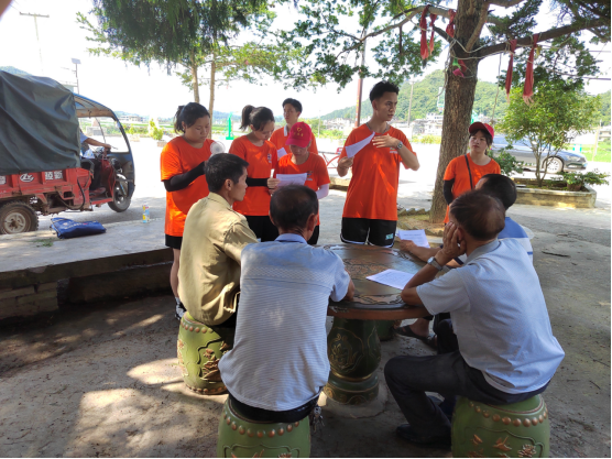 7月7日上午,实践团兵分两路,朱永毅书记带领实践团一队成员给村民们进行以《牢牢把握重大机遇,推动高质量发展》为题的新《国发2号》文件宣讲活动。朱书记联系村民生活实际,用生动幽默的语言宣讲了文件带来的机遇,让村民们了解新国发2号文件与自己的生活息息相关,是党和国家对贵州的关怀和厚爱,村民们热情高涨,掌声雷动。另一边,在王璐璐老师带领下,实践团二队成员入户给当地老人进行了防诈骗知识宣传和普及,宣传了不法分子常用的诈骗手段,提高了老人们的防诈骗意识,老人们表示获益匪浅。