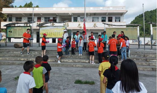 实践团二队成员在王璐璐老师和驻村干部吴良涛老师的带领下,来到新阳村小学开展法律普及和慰问活动,为14名留守儿童带来了书包、画笔等文具,还给孩子们上了一堂生动的包括儿童防拐卖、防校园欺凌等在内的自护教育课,活动中,孩子们积极参与问答,教育课程效果良好。