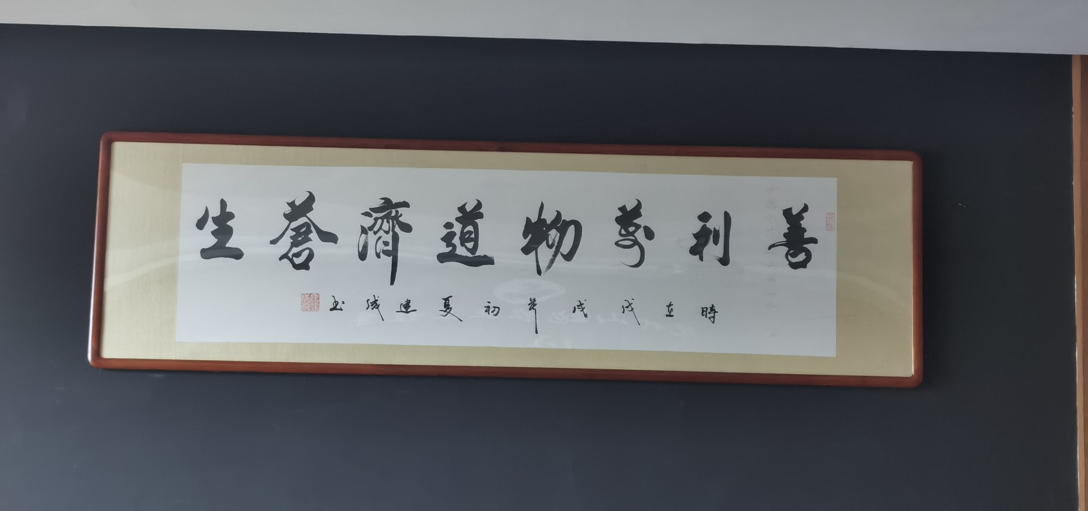 善利万物,取自老子《八章》,“上善若水,水善利万物而不争,处众人之所恶,故几于道”,立意我系师生要有奉献而不求索取的美德,有海纳百川的境界,有一往无前的勇气和坚定执著的精神。