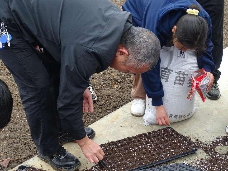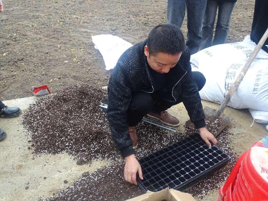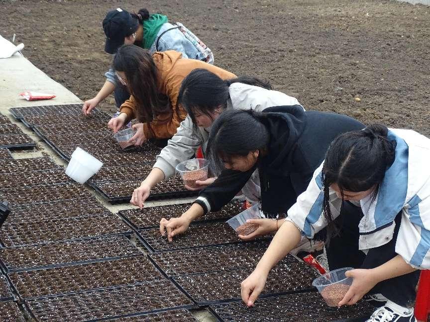 农历三四月和六月前后是种植高粱最好的时间,在基地指导员的介绍后,夏老师亲自为同学们指导高粱育苗技术,在育苗软盘的方格内装满育苗基质后将每个方格内按压出窝,每窝播下5-6颗种子,播满后用基质盖平至盘面,最后将软盘排列整齐以便管理。同学们干劲十足,分工明确,很快掌握了育苗技术要领,撸起袖子开始井然有序地配合完成高粱的播种。