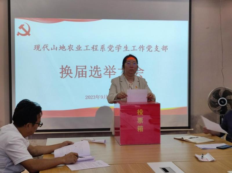 各支部换届选举大会对上届支部委员会的工作报告进行了审议,通过了选举办法、新一届支部委员候选人名单、监票人和计票人,采取差额选举和无记名投票的方式进行现场投票、现场计监票、现场唱票,选举产生了现代山地农业工程系教师教研党支部书记和学生工作党支部新一届委员会。随后,各支部(委员会)召开了第一次会议,会议综合考虑支部委员的岗位特点、工作经验等实际情况进行了分工。