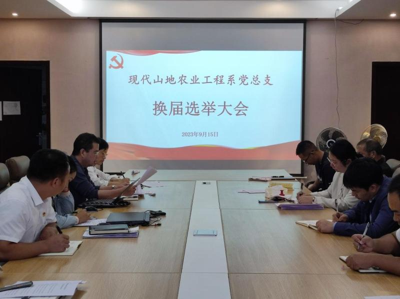 按照中共黔南民族职业技术学院委员会批复和党总支换届的要求,2023年9月15日,现代山地农业工程系党总支在知行楼会议室召开党总支换届选举大会。会议由现代山地农业工程系党总支书记朱永毅主持,全体党员参加会议。