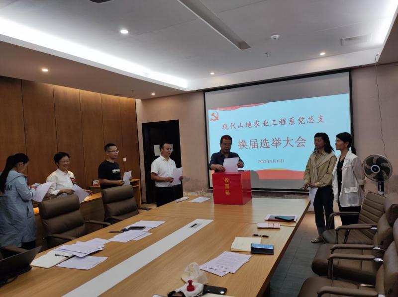 根据《中国共产党章程》和《中国共产党基层组织选举工作暂行条例》,全体与会党员表决通过了选举办法,现场推选了监票人、计票人,通过了候选人名单,通过差额投票选举,顺利完成了党总支换届选举,选举产生了新一届中共现代山地农业工程系总支委员会委员。