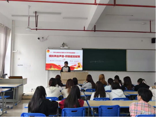 模拟“两会”提案环节,每班选取两个代表,从校园生活类、时事热点类等撰写两个提案并在会上发言,为国家、学校和系部发展建言献策。