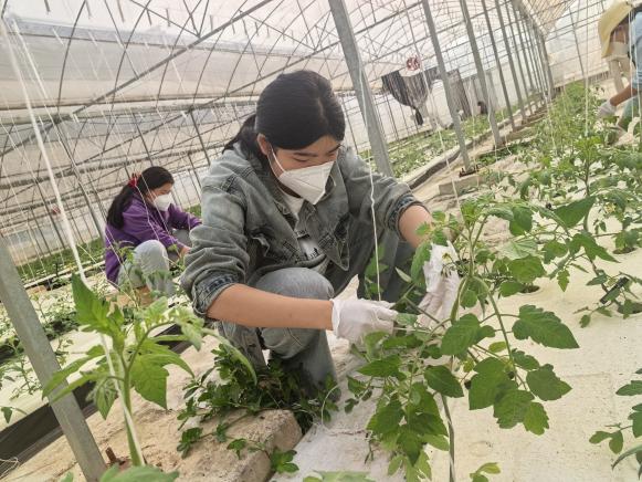大棚劳作强技能,田间实践出真知。本周同学们扎根番茄种植基地,重点开展大棚番茄田间管理实操训练。在企业技术人员的示范指导下,大家熟练掌握番茄绕蔓操作要领,规范牵引、固定藤蔓,保障植株通风透光与有序生长;同步开展番茄病虫害识别实训,近距离观察病害症状、辨识虫害特征,学习科学防控方法,把课堂知识转化为田间实操能力。理论授课筑根基,全流程懂栽培。公司李总为同学们带来一堂系统全面的番茄栽培管理理论课,从大棚结构搭建、苗期管理、花期保花保果、生长期水肥调控,到成熟采收、采后处理与市场销售全链条讲解,内容详实、贴近生产,让同学们清晰掌握番茄从“棚”到“市”的完整技术流程,夯实专业理论基础。